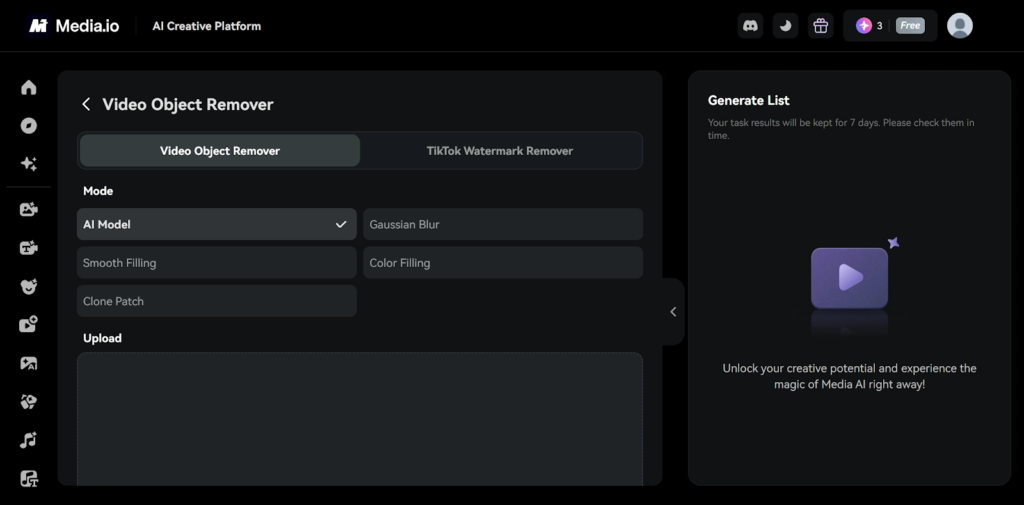 One of its helpful tools is Media.io Video Eraser. This video eraser integrates several advanced AI capabilities. These technologies allow the eraser to work with impressive accuracy. It can cleanly remove items like watermarks, logos, or unexpected photobombers.
