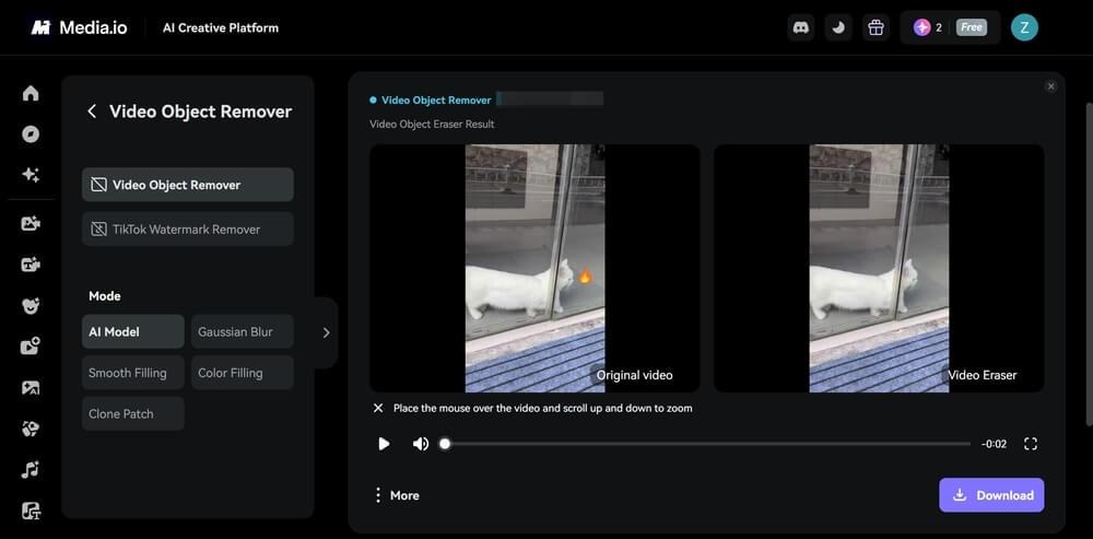 Once done, you’ll see the result right away. To save it, click the “Download” button. If you want to create another version, hover over the preview and adjust the eraser.